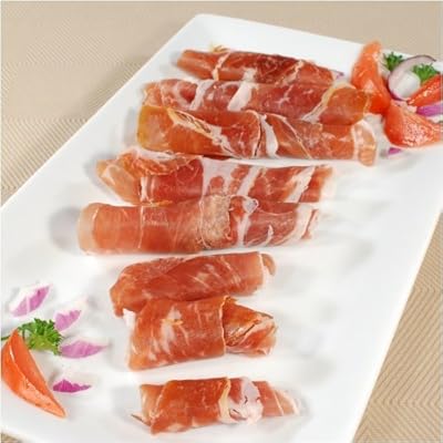 Parma Ham, or Prosciutto di Parma is full of flavor, matured for 8-10 months, highly prized by connoisseurs. It has a deep rose color, with a thin layer of fat that renders it sweet and salty at the same time. It's made under strict quality controls in Italy. Boneless, pre-sliced and ready to enjoy.