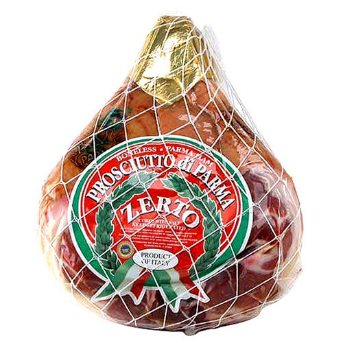 The tender, sweet taste of Prosciutto di Parma, enjoyed by Italians for over eight centuries, is still made in the hills around Parma using the same traditional methods of production. Only select Prosciutto from Parma can be branded with the distinctive Ducal Crown, symbolizing quality and excellence. This whole-leg size Prosciutto is boneless for thin slicing. Traditionally served in overlapping, folded-over slices with bread, it also goes beautifully with melon, figs, pears and dates. Dice into a delicious pasta sauce or risotto, wrap around chicken or tuck inside rolled veal scallopini. 15 lbs.